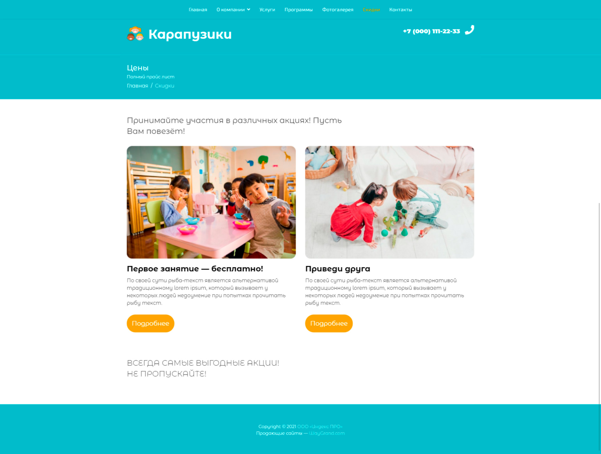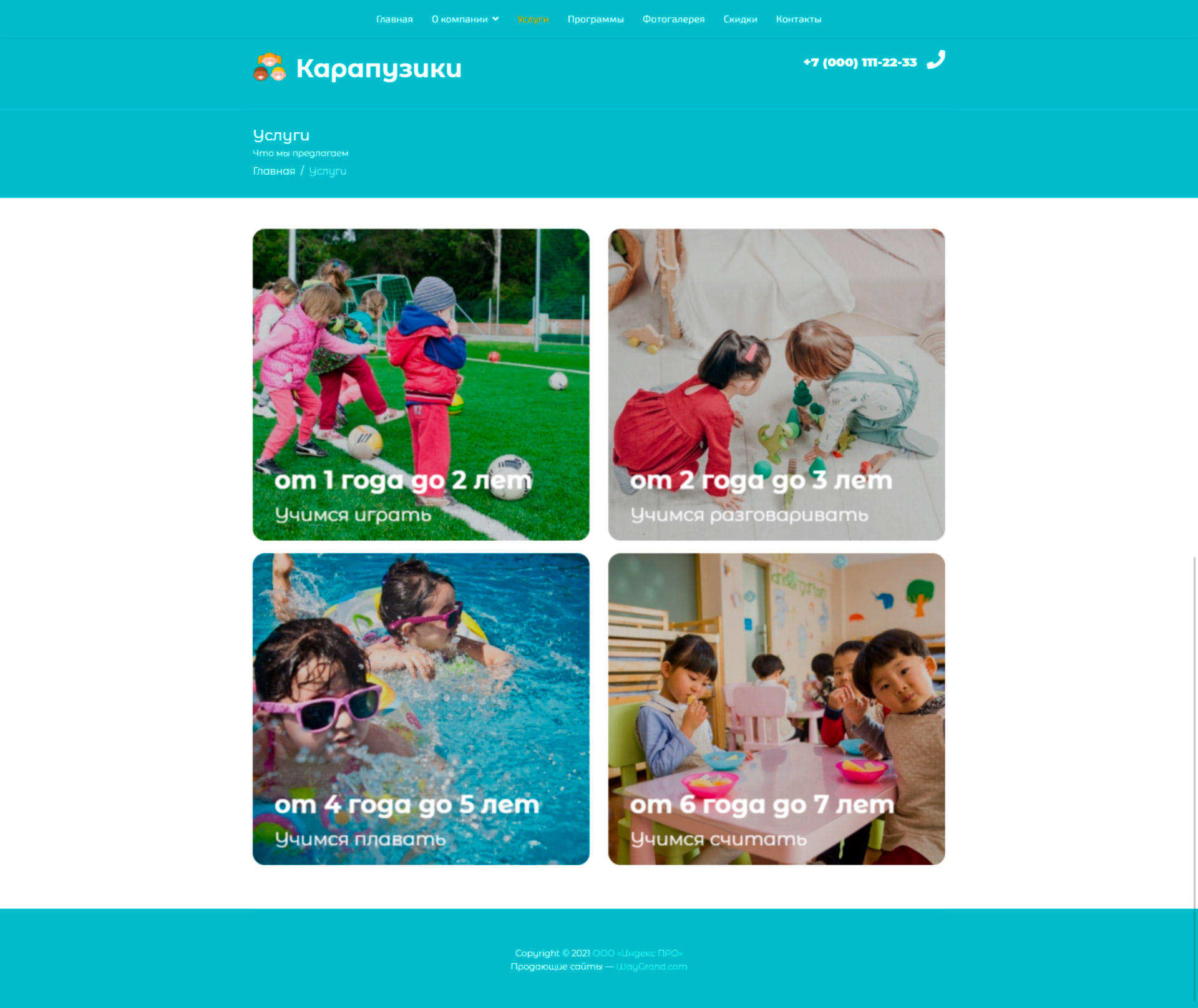 Закажите готовый продающий сайт визитка #0419301 в Назрани за 5-7 дня «под ключ»: свёрстан, отрисован и готов к рекламе. Тематика шаблона «Частный детский центр».