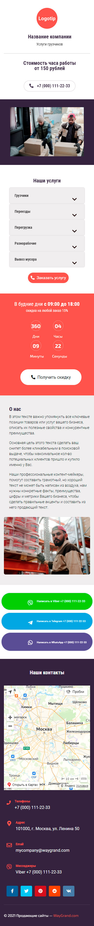 Закажите готовый продающий сайт визитка #2562101 в Назрани за 5-7 дня «под ключ»: свёрстан, отрисован и готов к рекламе. Тематика шаблона «Услуги грузчиков».