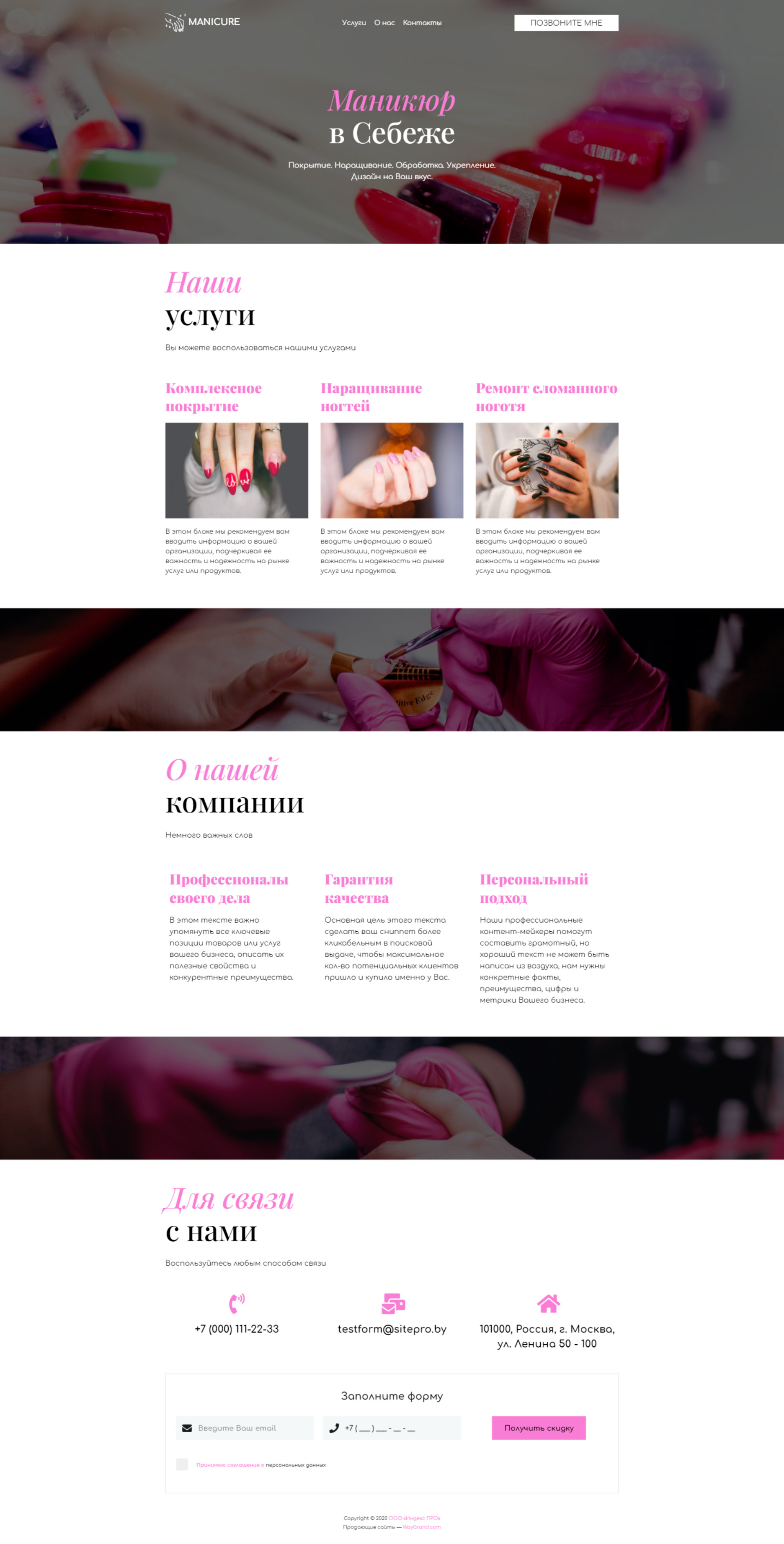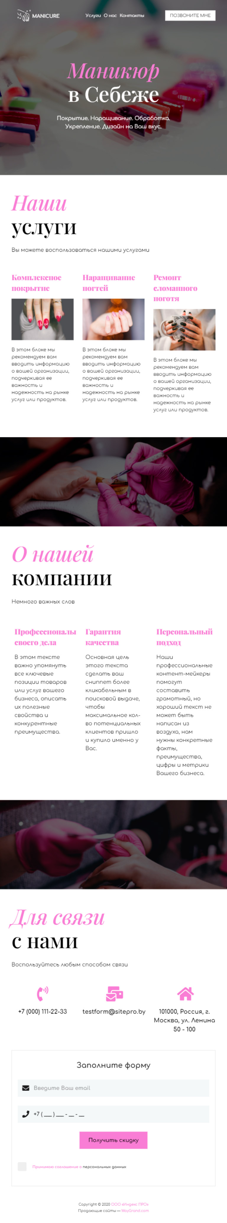 Закажите готовый продающий сайт визитка #1107102 в Назрани за 5-7 дня «под ключ»: свёрстан, отрисован и готов к рекламе. Тематика шаблона «Маникюр в Себеже».