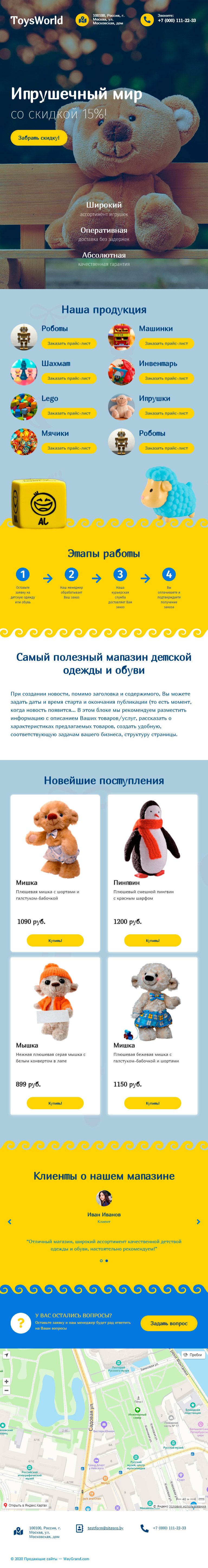 Закажите готовый продающий сайт лендинг #1509201 в Назрани за 1-3 дня «под ключ»: свёрстан, отрисован и готов к рекламе. Тематика шаблона «Игрушечный мир».