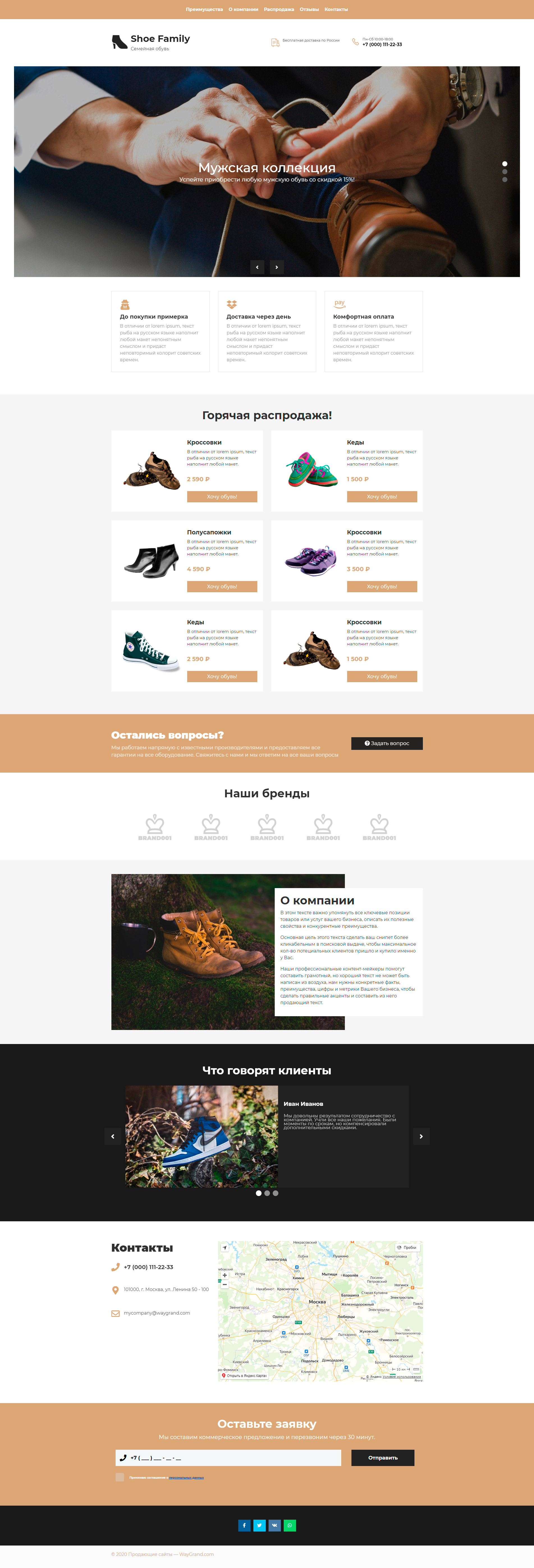 Закажите готовый продающий сайт лендинг #1517201 в Назрани за 1-3 дня «под ключ»: свёрстан, отрисован и готов к рекламе. Тематика шаблона «Обувь».