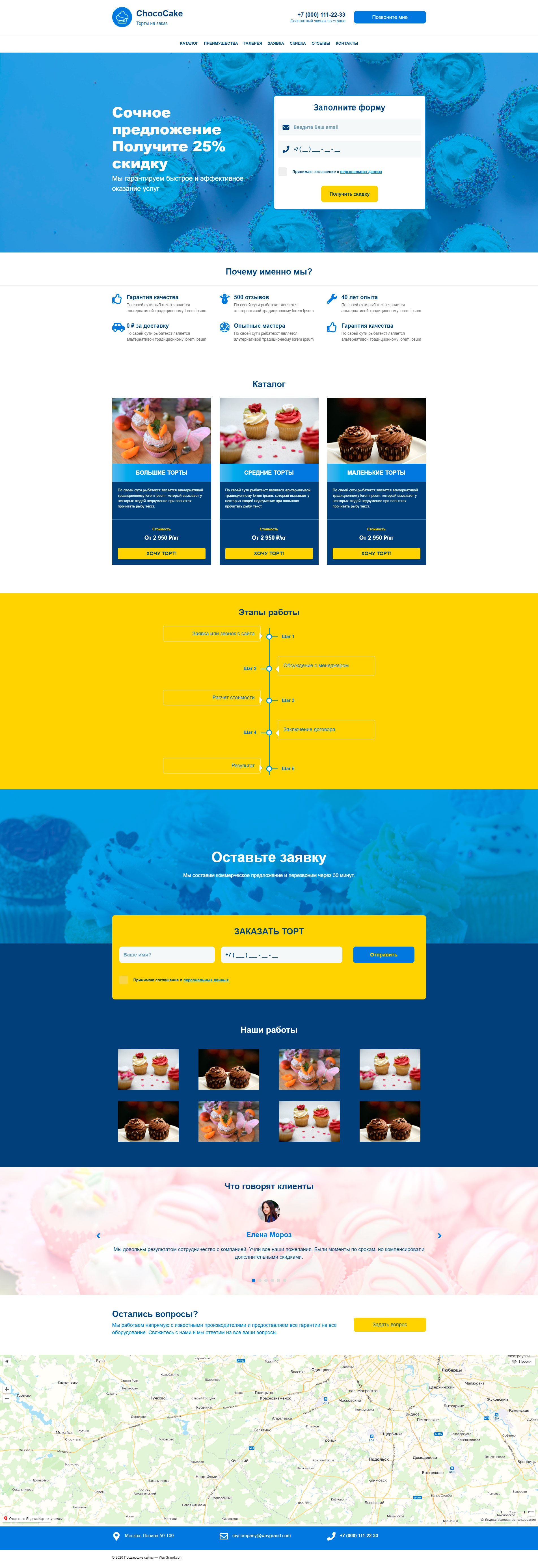 Закажите готовый продающий сайт лендинг #1711205 в Назрани за 1-3 дня «под ключ»: свёрстан, отрисован и готов к рекламе. Тематика шаблона «Торты на заказ».