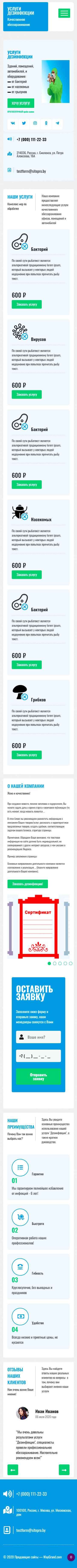 Закажите готовый продающий сайт лендинг #0608201 в Назрани за 1-3 дня «под ключ»: свёрстан, отрисован и готов к рекламе. Тематика шаблона «Услуги дезинфекции».