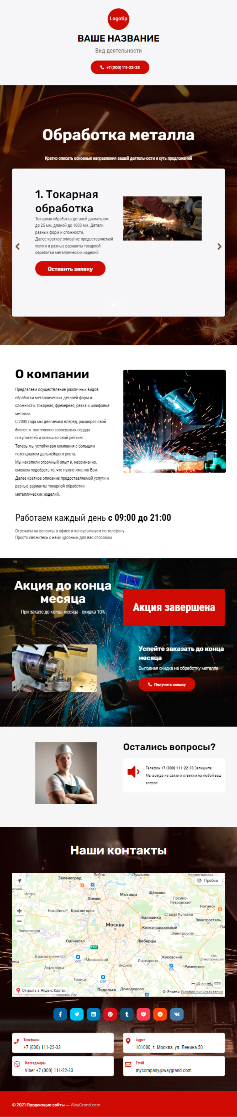 Закажите готовый продающий сайт визитка #1209101 в Назрани за 5-7 дня «под ключ»: свёрстан, отрисован и готов к рекламе. Тематика шаблона «Обработка металла».