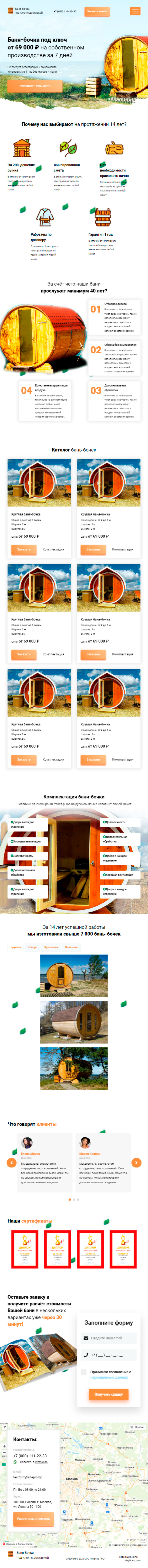 Закажите готовый продающий сайт лендинг #2172204 в Назрани за 1-3 дня «под ключ»: свёрстан, отрисован и готов к рекламе. Тематика шаблона «Баня-бочки».