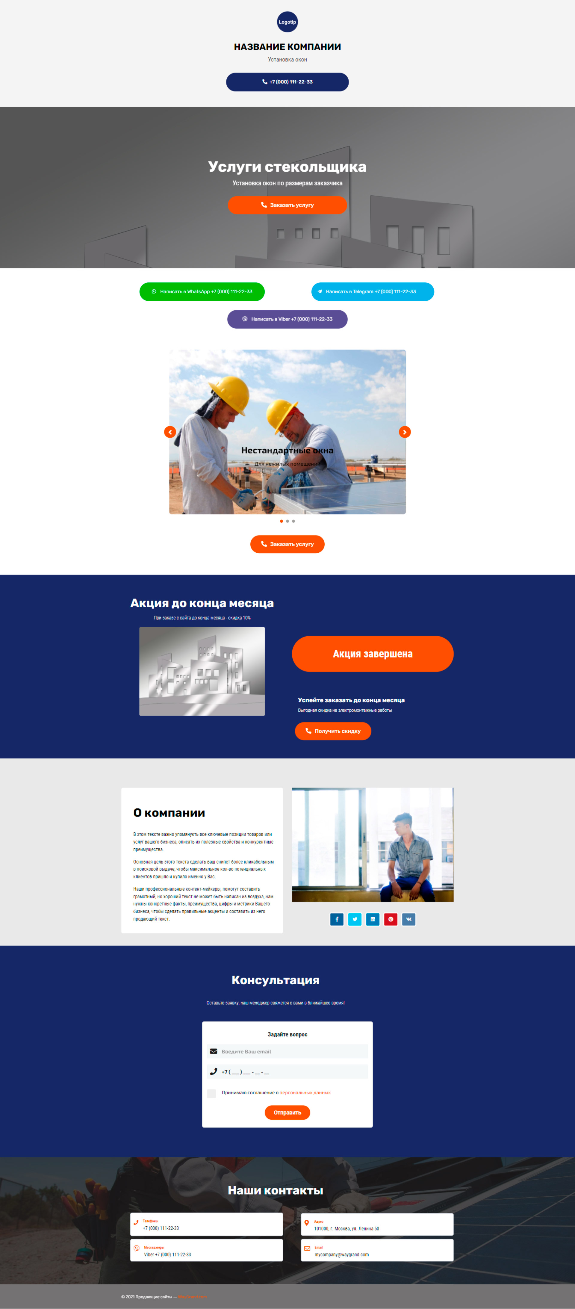 Закажите готовый продающий сайт визитка #2138101 в Назрани за 5-7 дня «под ключ»: свёрстан, отрисован и готов к рекламе. Тематика шаблона «Установка окон».