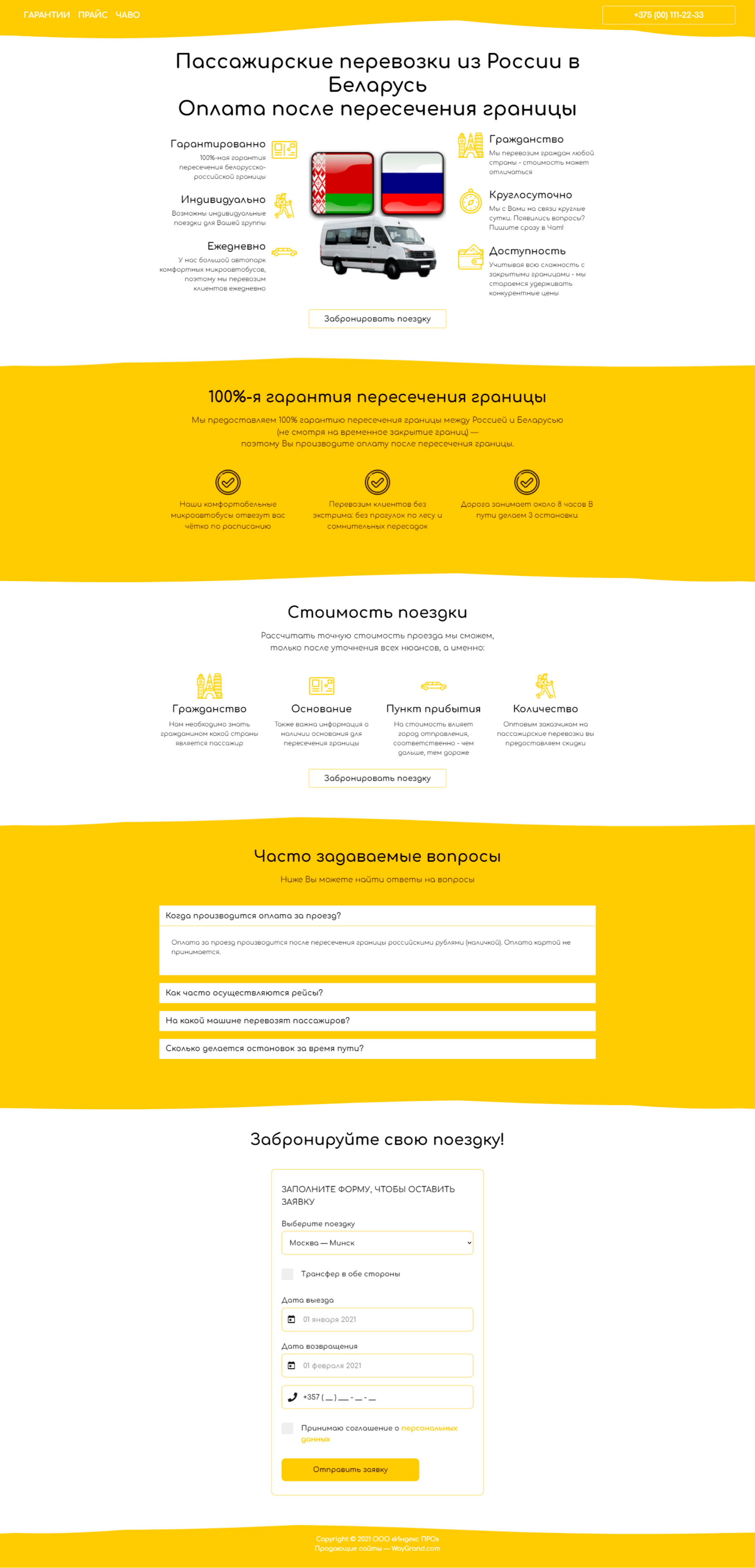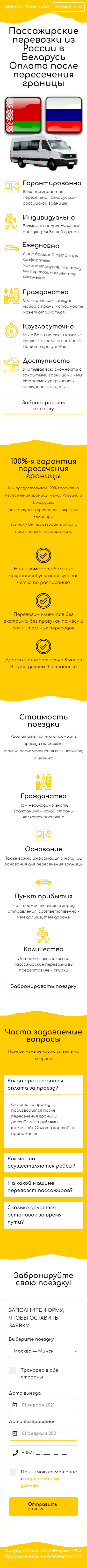 Закажите готовый продающий сайт лендинг #2528203 в Назрани за 1-3 дня «под ключ»: свёрстан, отрисован и готов к рекламе. Тематика шаблона «Пассажирские перевозки из России в Беларусь».