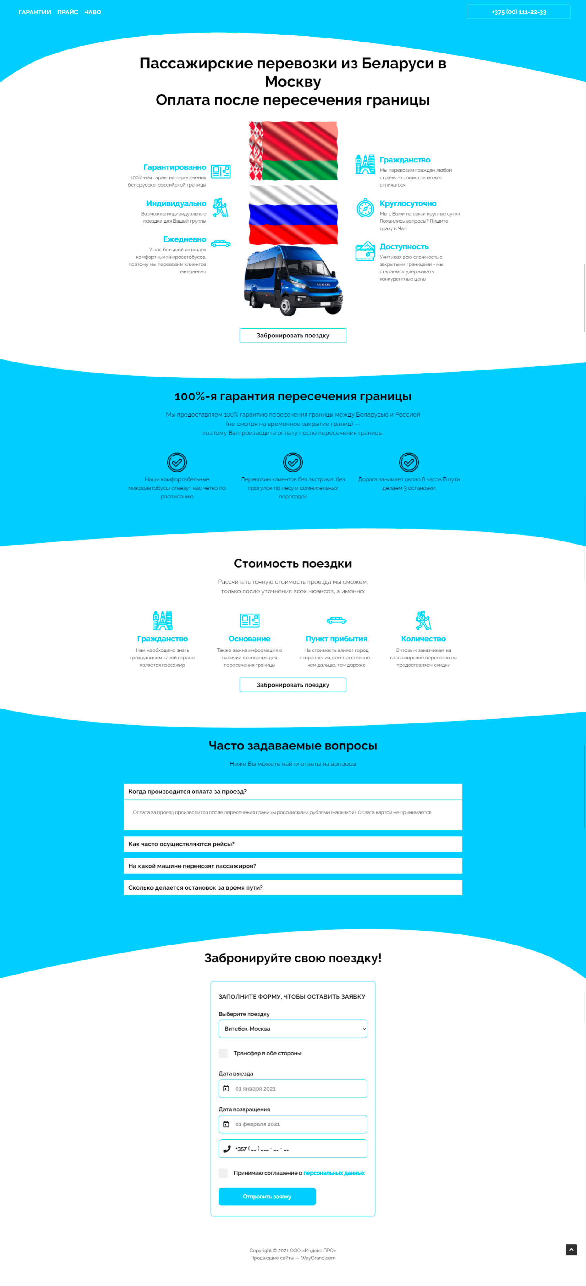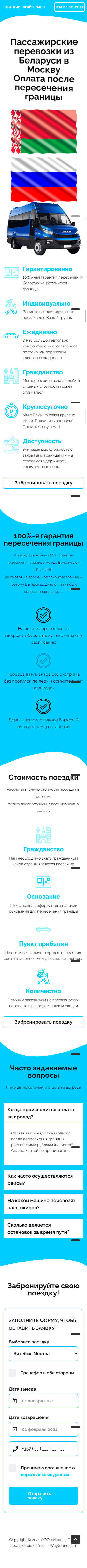 Закажите готовый продающий сайт лендинг #2528204 в Назрани за 1-3 дня «под ключ»: свёрстан, отрисован и готов к рекламе. Тематика шаблона «Пассажирские перевозки из Беларуси в Москву».