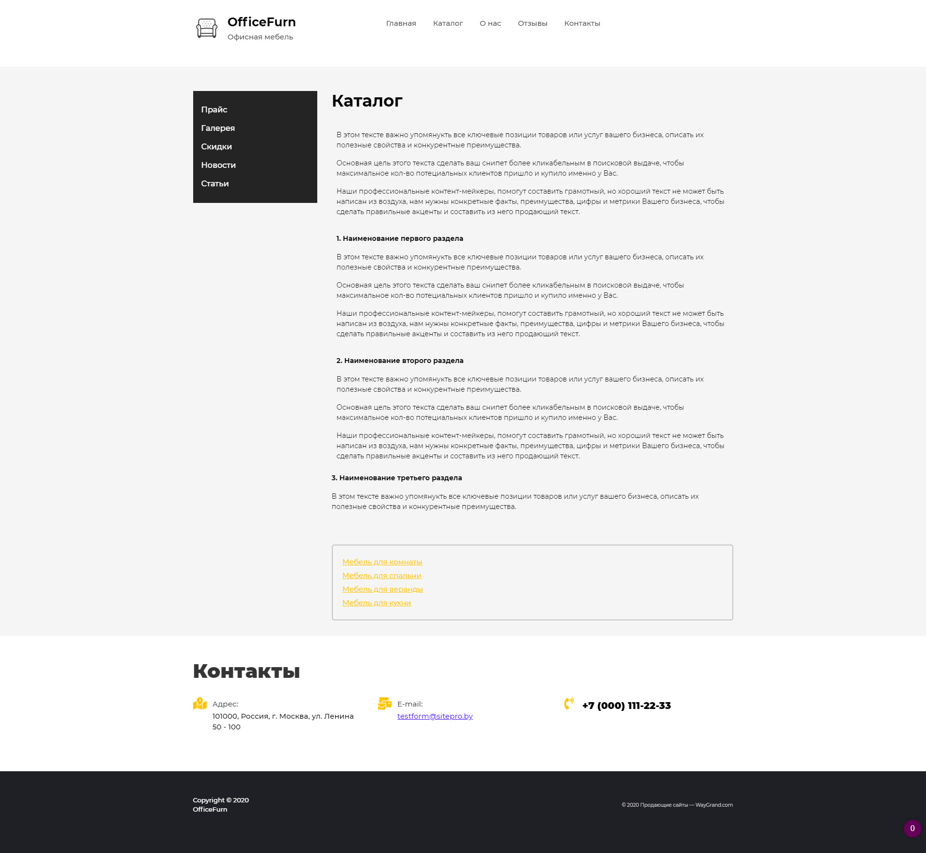 Закажите готовый продающий сайт визитка #0921301 в Назрани за 5-7 дня «под ключ»: свёрстан, отрисован и готов к рекламе. Тематика шаблона «Офисная мебель».