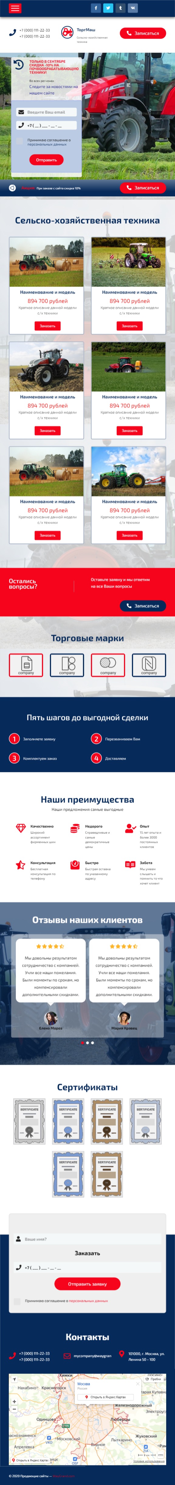 Закажите готовый продающий сайт лендинг #2553202 в Назрани за 1-3 дня «под ключ»: свёрстан, отрисован и готов к рекламе. Тематика шаблона «Сельско-хозяйственная техника».