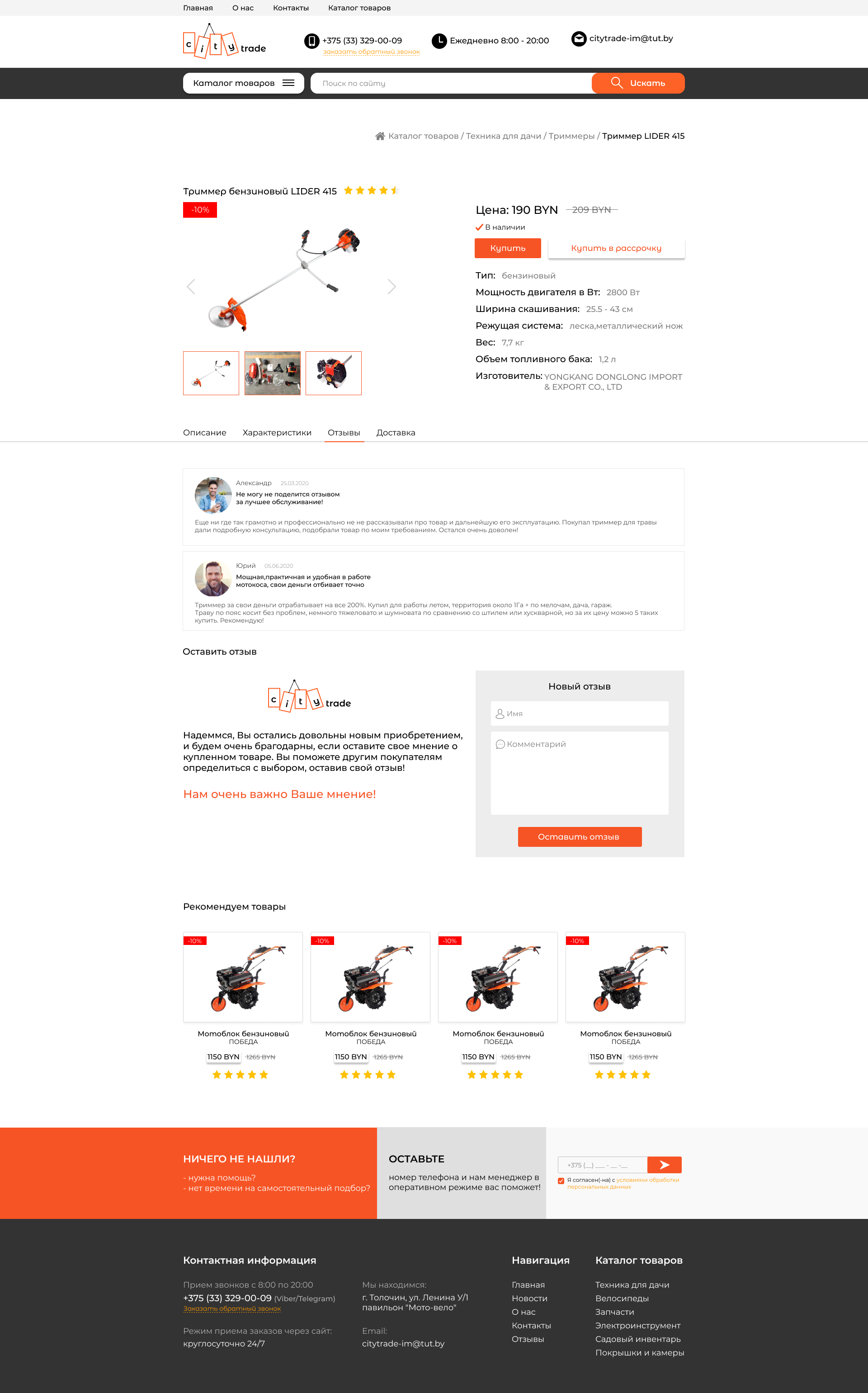 Закажите готовый продающий сайт визитка #281 в Назрани за 5-7 дня «под ключ»: свёрстан, отрисован и готов к рекламе. Тематика шаблона «Розничная продажа садовой техники, велосипедов».