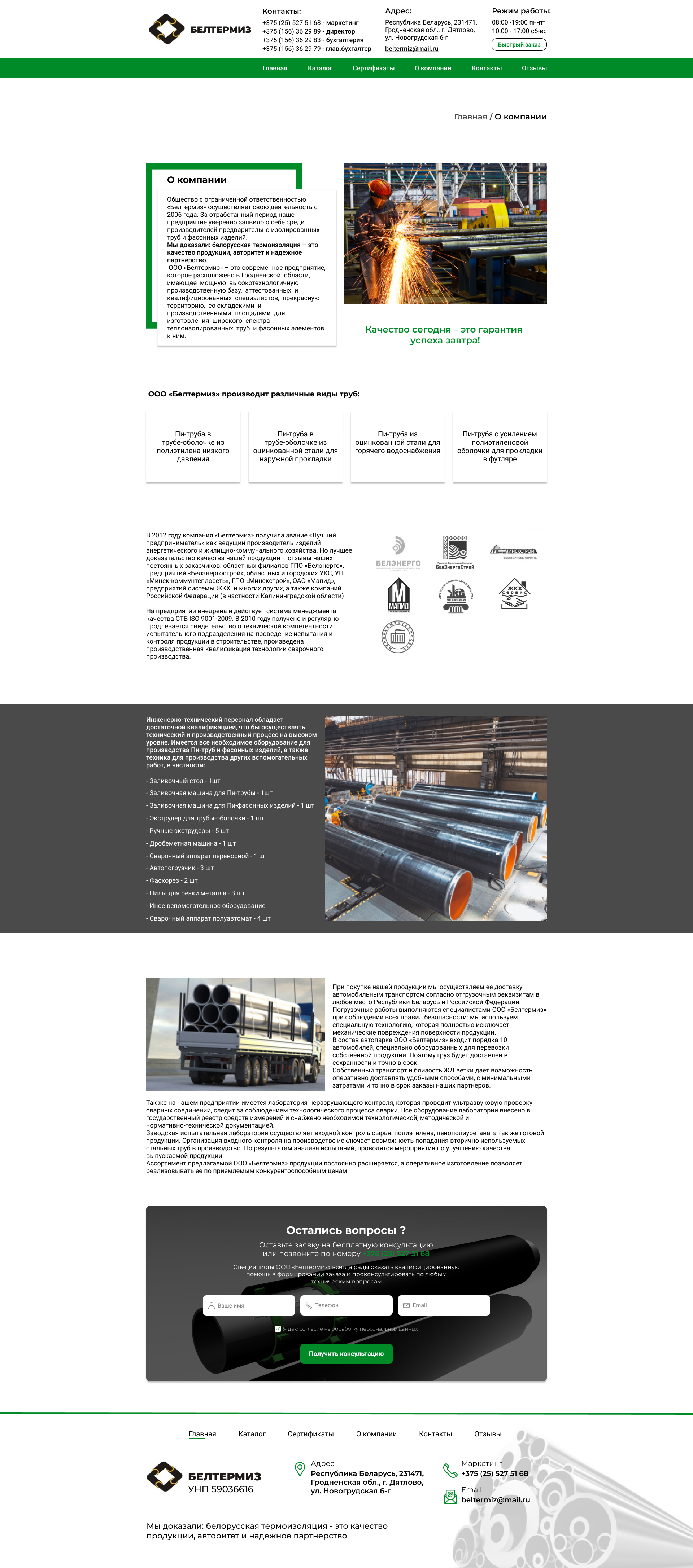- Страница "О компании"