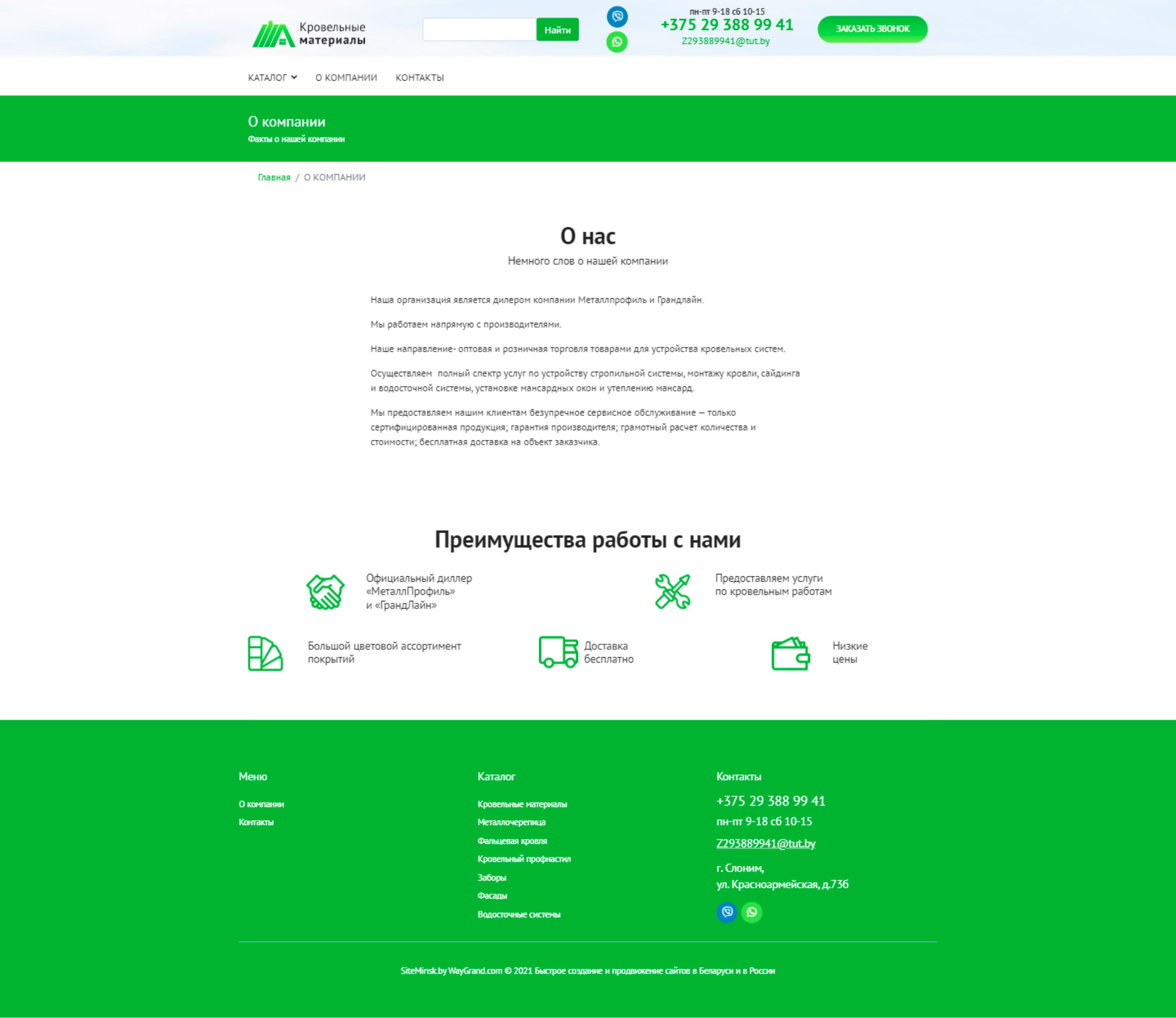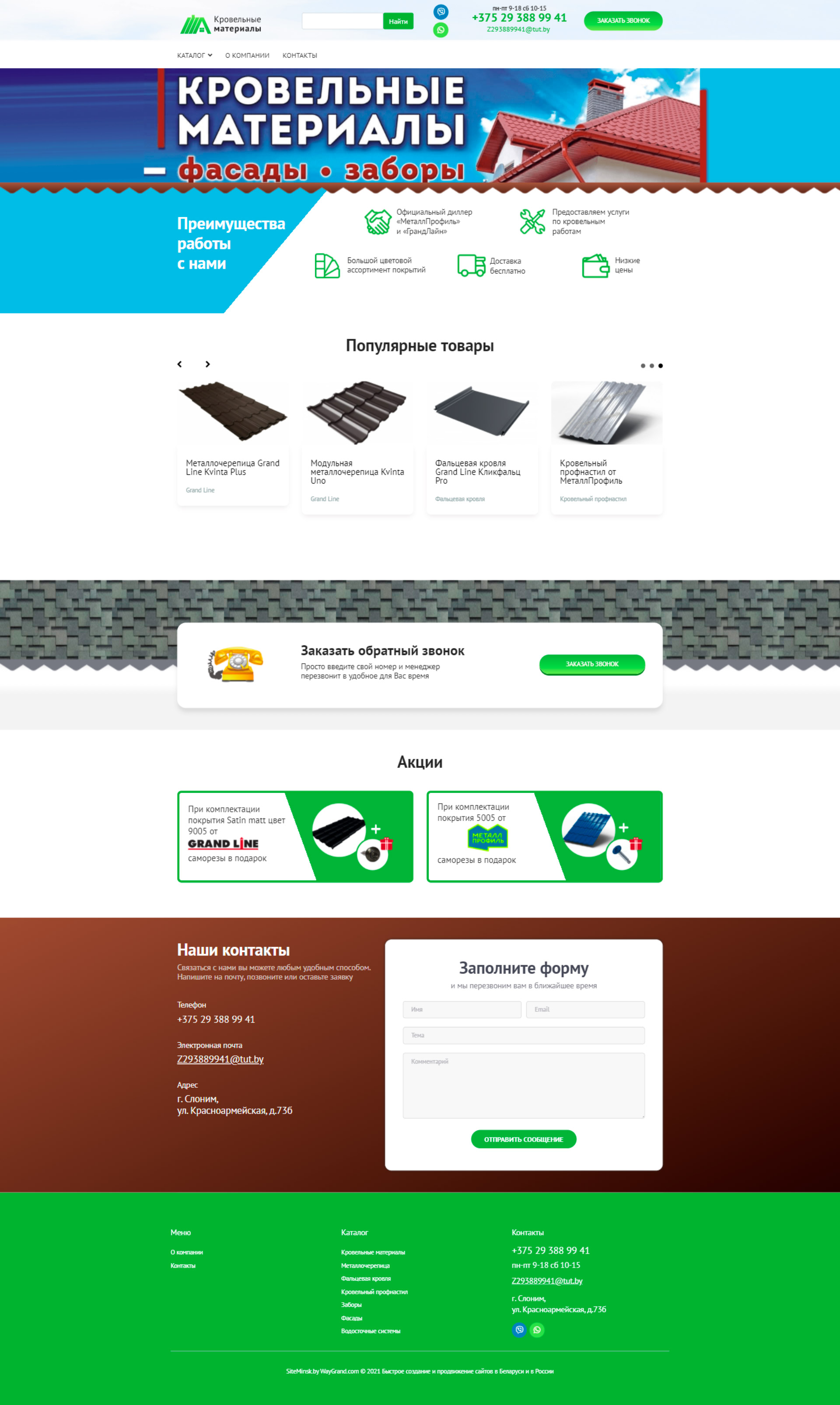 Закажите готовый продающий сайт визитка #324 в Назрани «под ключ» на waygrand по выгодной цене: свёрстан, отрисован и готов к рекламе. Тематика шаблона «Кровельные материалы».