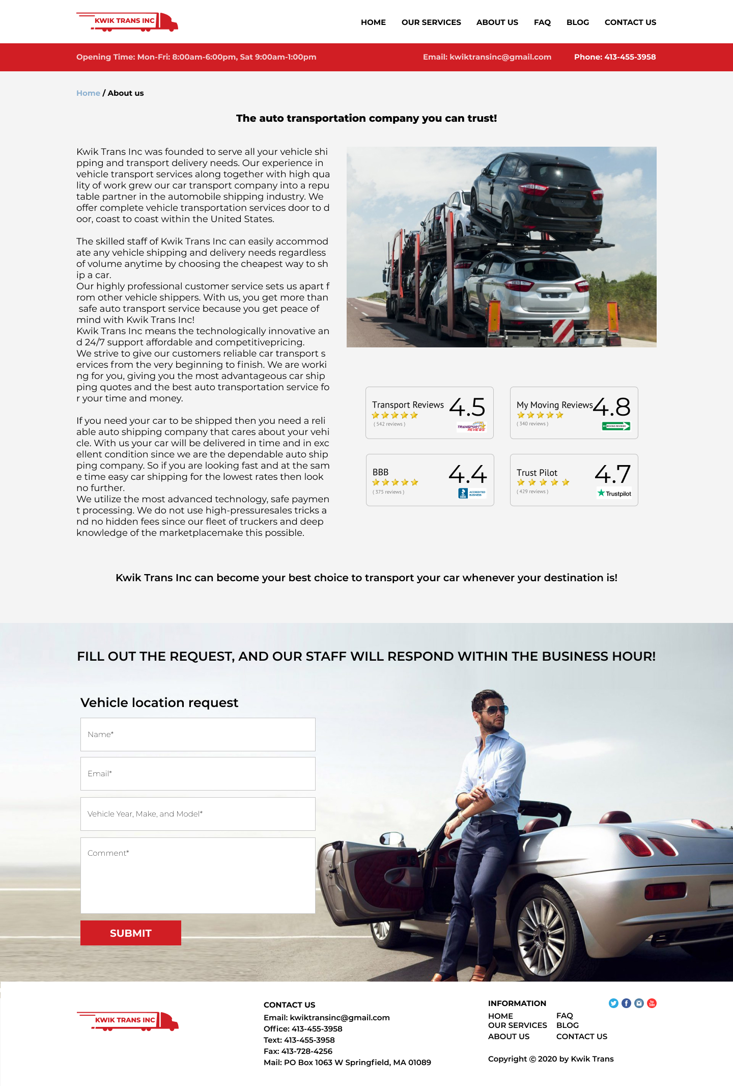 Закажите готовый продающий сайт визитка #223 в Назрани за 5-7 дня «под ключ»: свёрстан, отрисован и готов к рекламе. Тематика шаблона «Safe & Reliable National Auto Transport».
