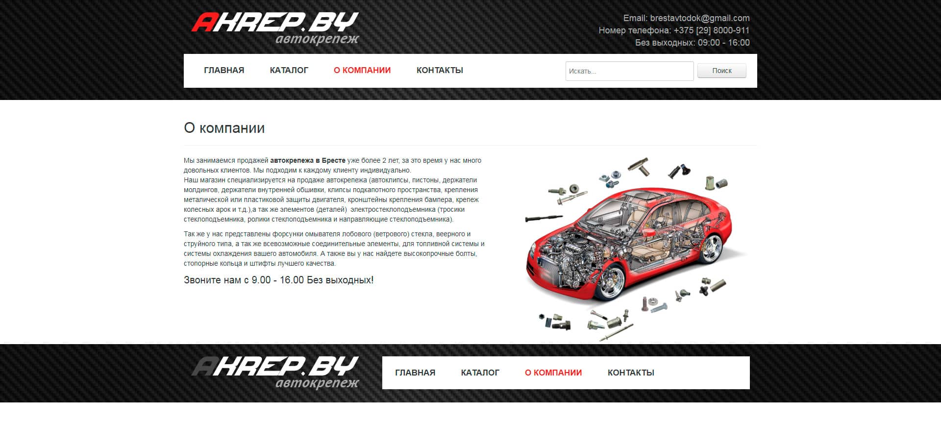 Сделали уникальный сайт по тематике каталог автокрепежа за 25 дней. Основная цель клиента: упрощение процесса продаж, необходимость увеличения трафика. Сайт должен решать основную задачу: неограниченные возможности демонстрации продукта, увеличение дохода компании за счет интернет-продаж. По цене, заказчику данный заказ обошелся в 1429 BYN.